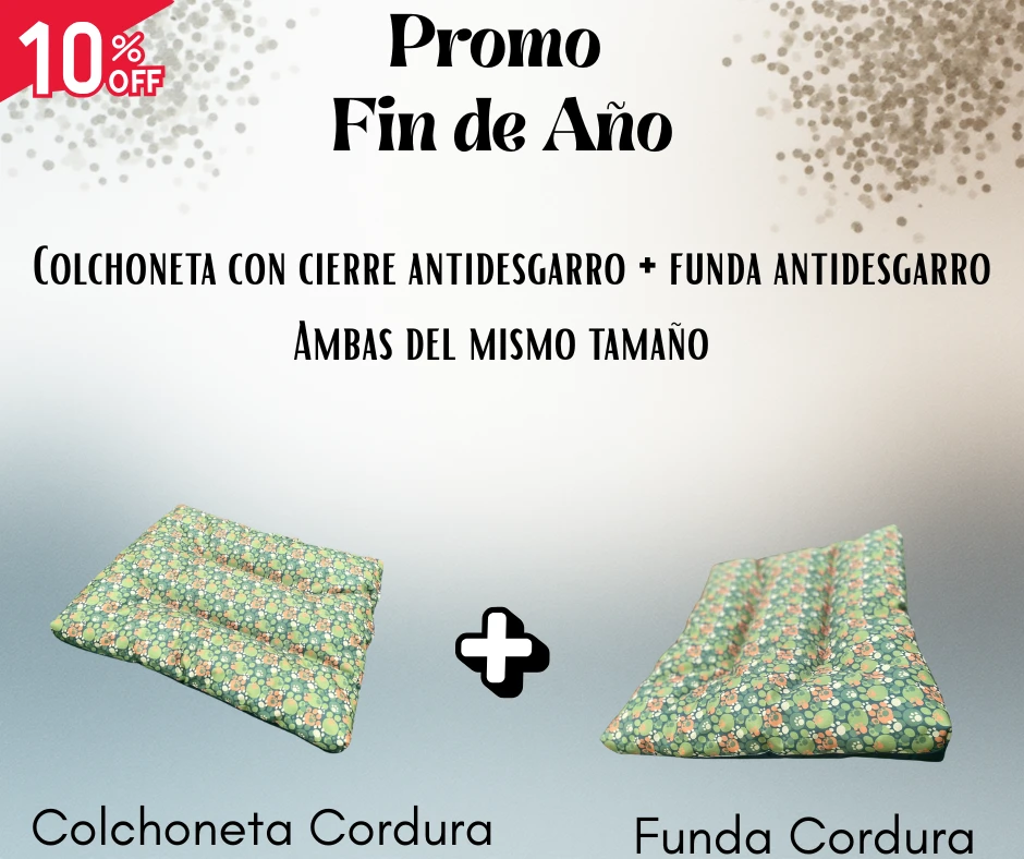 VIENE INCLUIDO EN EL COMBO UNA FUNDA DEL MISMO TAMAÑO DE LA COLCHONETA CON CIERRE PERO DE TELA ANTIDESGARRO CON BASE IMPERMEABLE